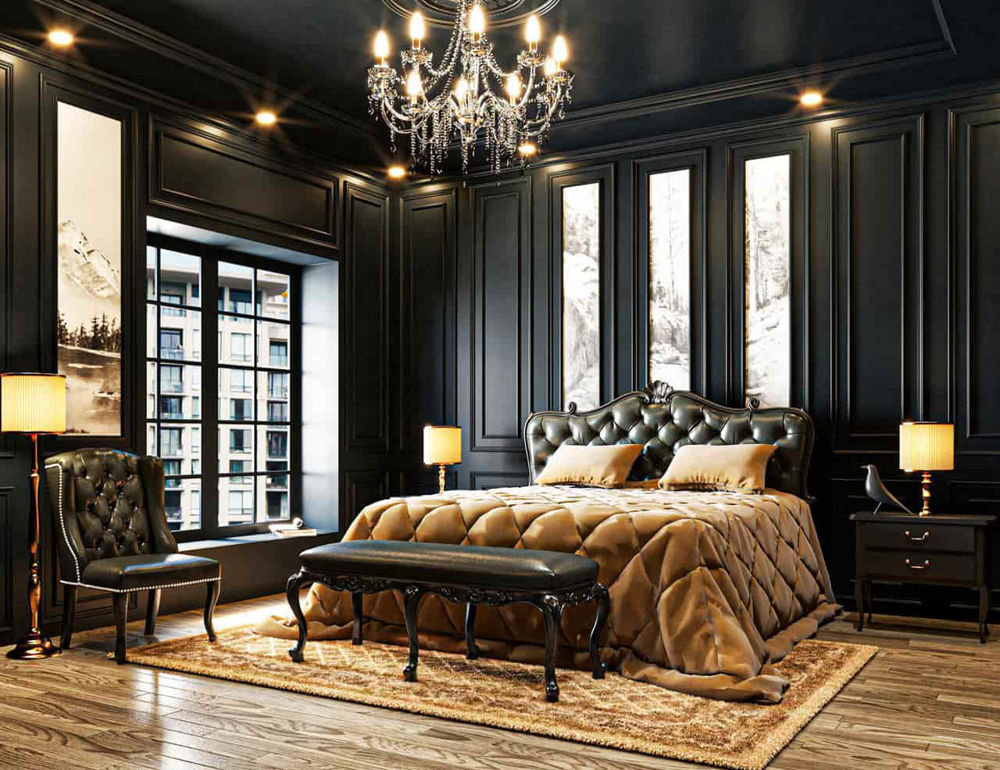 - دیوار های مشکی در کنار تخت یا پرده های سرمه ای.